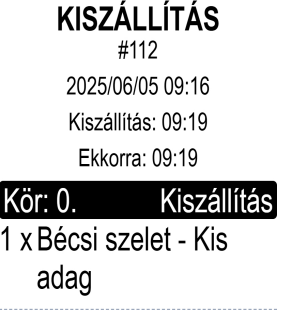 Amikor elkészült a rendelés, akkor a Sorszámok nézetben a rendelést kiválasztva, először azt le kell fizettetni! Ekkor kerülnek beküldésre az NTAK adatok és kerül nyomtatásra az összesítő blokk egyéb fizetési típussal. Lefizettetést követően pedig a "Kiadható" gomb koppintva értesítést küldünk a Wolt felé, hogy a rendelés elkészült.